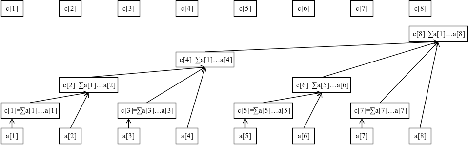 那到底怎么维护的呢?实际上,cxc _ x 维护的是 [axlowbit(x)+1,ax][a _ {x - lowbit(x) + 1},a _ x] 的信息。
